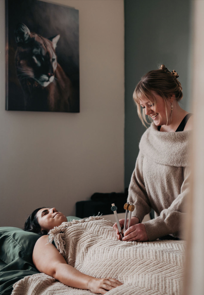Each session begins with gentle acupuncture as the foundation of your treatment. From there, I incorporate supportive modalities like fire cupping, breathwork, sound healing, nervous system regulation, and subtle energetic therapies to fully meet your unique needs.